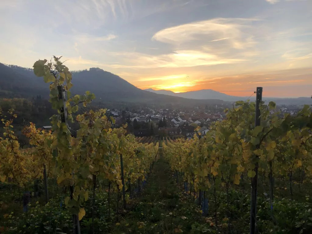 In malerischer Landschaft den Feierabend beim Sonnenuntergang genießen. Wer käme da nicht ins Schwärmen. Wir machen dies für Sie möglich. Ein gemütliche Spaziergang führt durch die Streuobstwiesen in die Weinberge. Bei einem kleinen Versper zwischen den Reben könne Sie die Seele baumeln lassen und den Abend genießen.